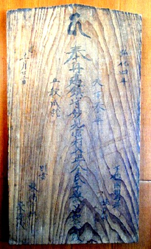背面−「・・・ 大正十四年十月十四日 金三十円 神戸有則殿 金二十三円 日暮清太郎殿 (23名略) 同(金)百円 修理担当人 神戸佐平治」(合計256円)